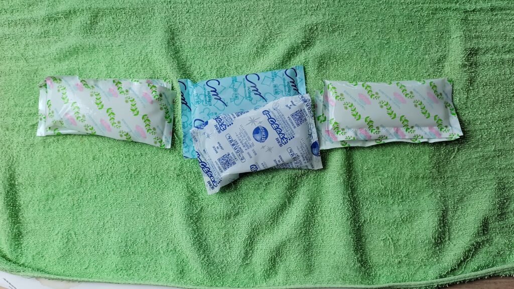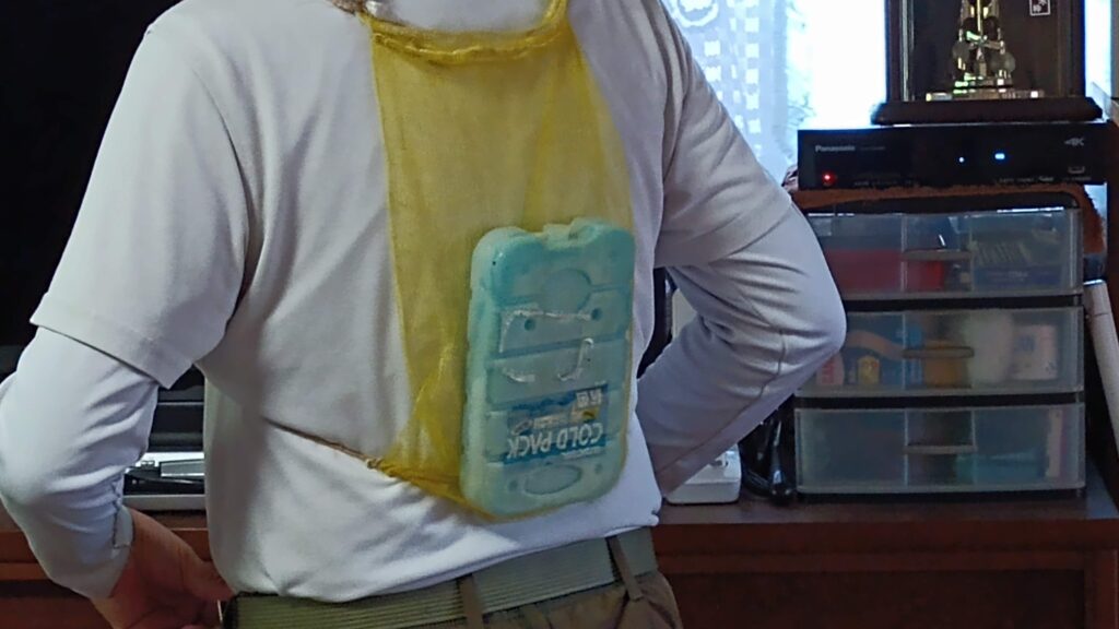 こちらは首巻用ですが、背中にも保冷剤在庫を背負う時もあります・・・熱い日動き出すスイッチが入ります