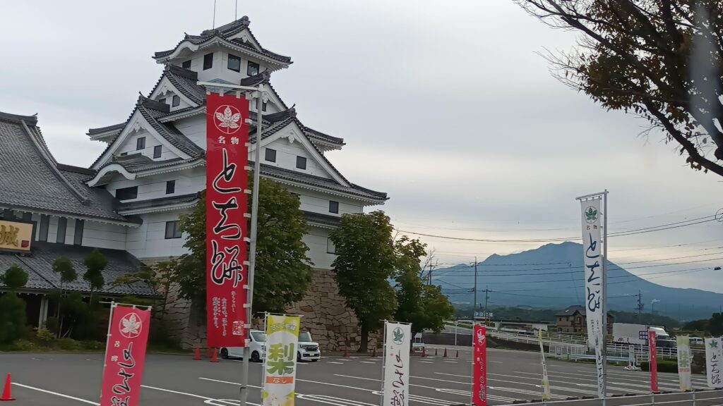 8時半に境港を出発しましてから、行ってきまーすと米子繁華街を過ぎまして・・・一路バスは燕趙園に向かっています・・・日本交通観光バスの1号車の車窓からパチリ📸・・・なんと日交バスにはトイレがついていましてびっくりしました。飛行機のトイレのようなシュシュ-と吸い込む感じで何とも素敵でした・・・心配して尿漏れパッドをつけて初参戦しましたが安堵・安心の旅になりました・・・