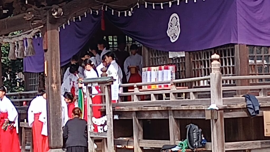 境内では、小学校6年生の女子が巫女さん姿になり持ち受けてくれます・・・
