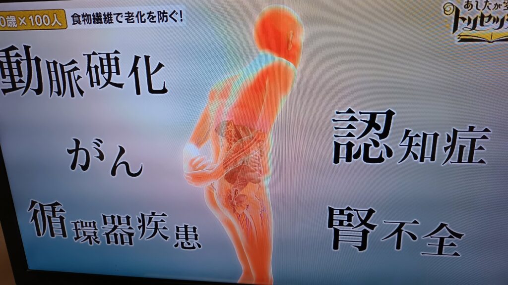 古くより人類の夢としましては・・・願いとしまして、不老不死の薬を求めて、健康長寿でありたい、100歳を健康で迎えたい・・・せっかく生まれてきた自分の人生を全うして、よい仲間に囲まれていい人生であったと感謝を述べてピンピンコロリで、成仏したいものです・・・そのことをNHKあしたが変わるトリセツショーで行っていましたので、食物繊維を中心に紹介してみます・・・
