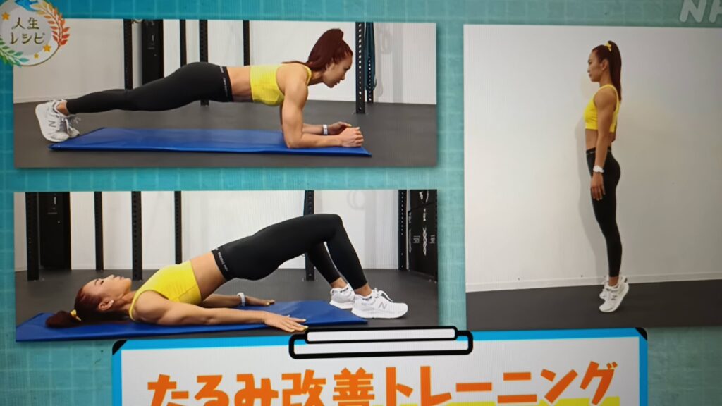 NHKプラスで見ましたEテレの見逃し配信より あしたも晴れ! 人生レシピ よりピックアップしました・・・フィットネスプロデューサーのAYAさんのたるみ対策よりの引用です・・・こんな方法もございます・・・今後の70歳の壁を乗り越えるために必要なような気がしましたので 記録に残してみました・・・