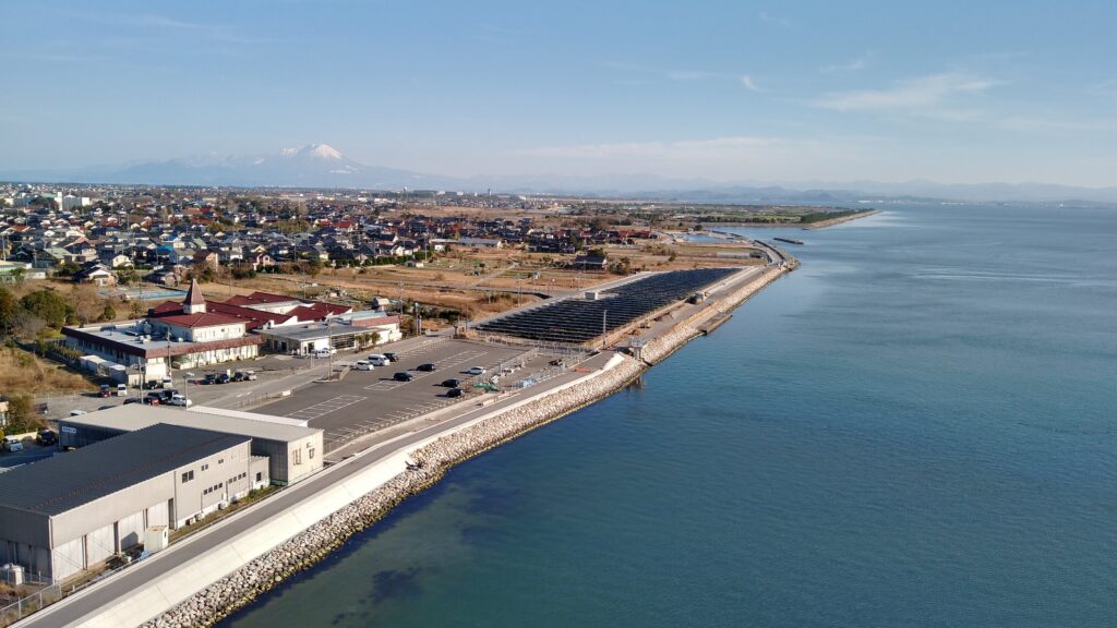 その渡漁港は防災の観点から護岸工事がされまして、この度西方向に300メートルほど中海側に作られ・・・旧渡漁港は埋め立てられまして、跡地の有効利用は住民の意見を聞くためにワークショップが開催されました・・・