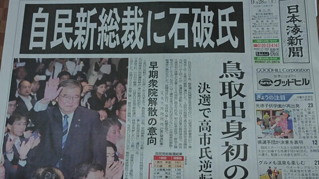 今! 鳥取県と言いますと石破自民党総裁で内閣総理大臣就任でにぎわしています・・・
